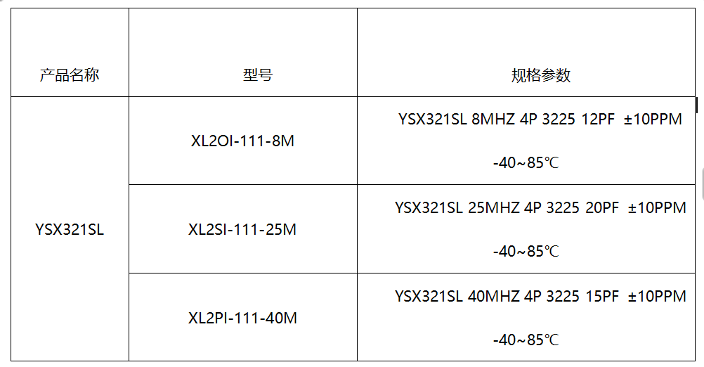● 高精度无源晶振:YSX321SL系列
