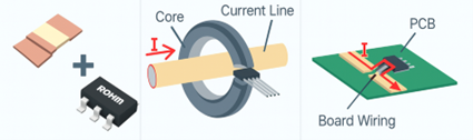 | 原理 | 放大分流电阻上的电压降 | 放大分流电阻上的电压降。适用于小电流场景。 | 检测磁芯的磁场 | 向IC输入电流并检测磁场 |